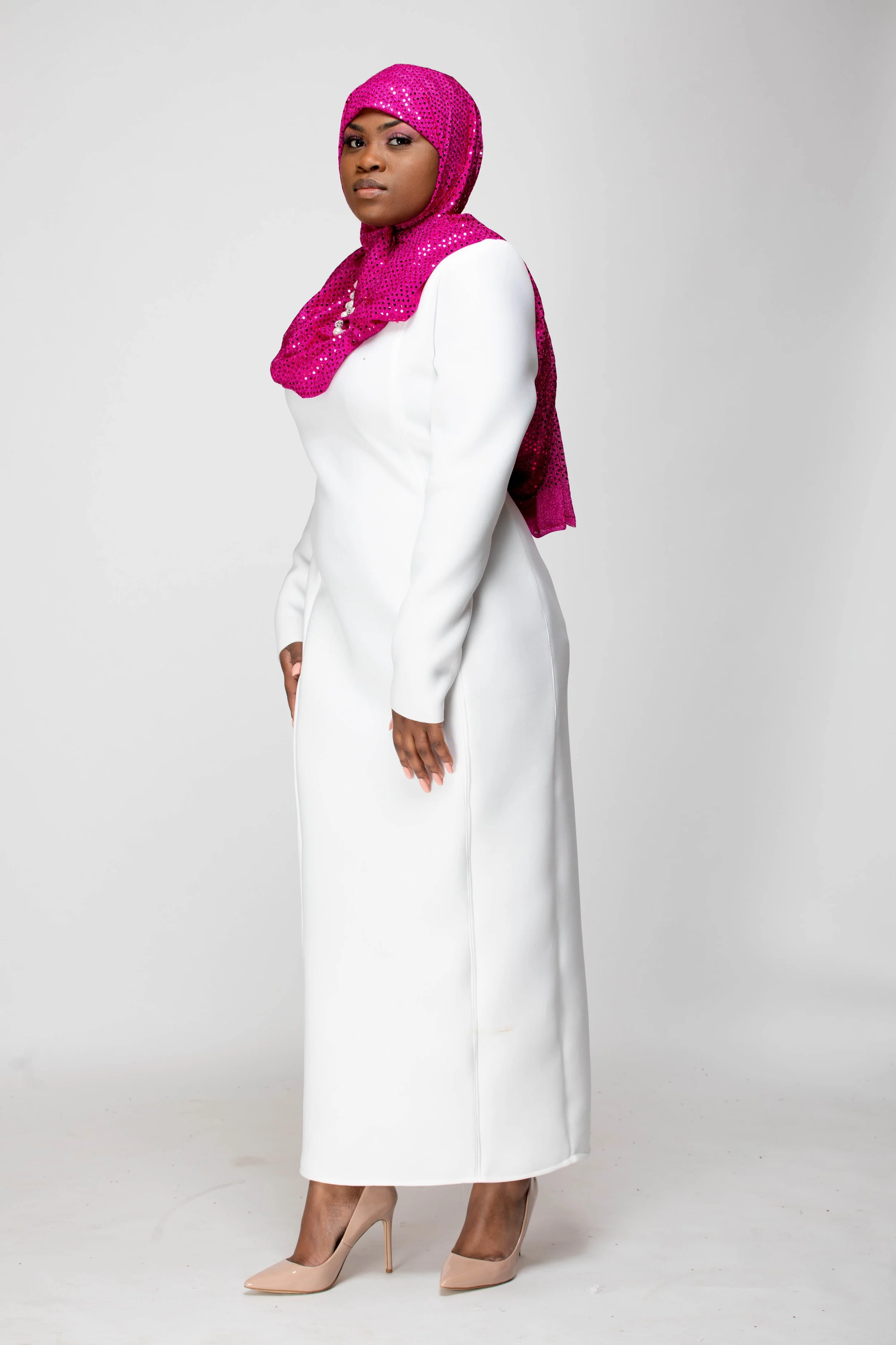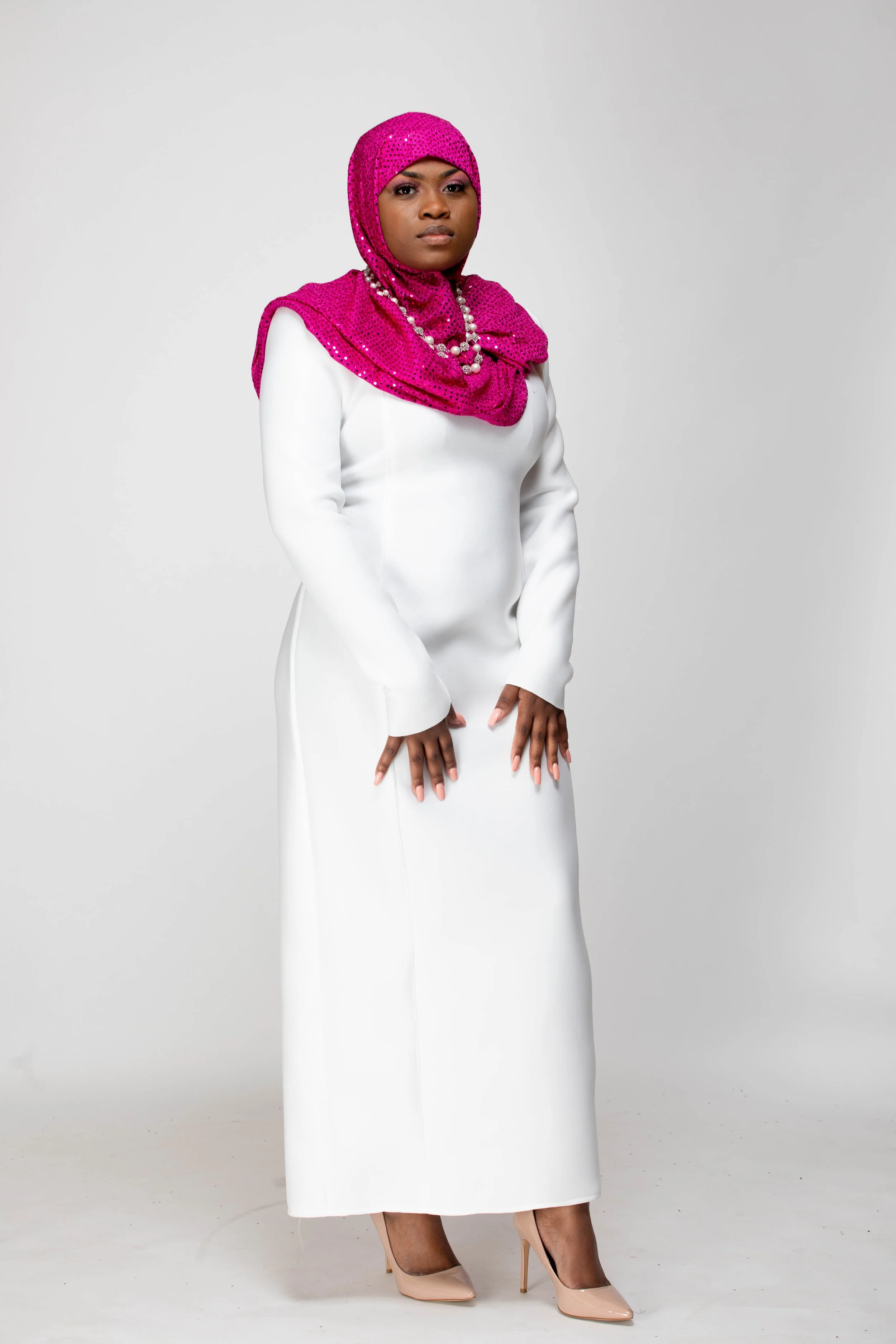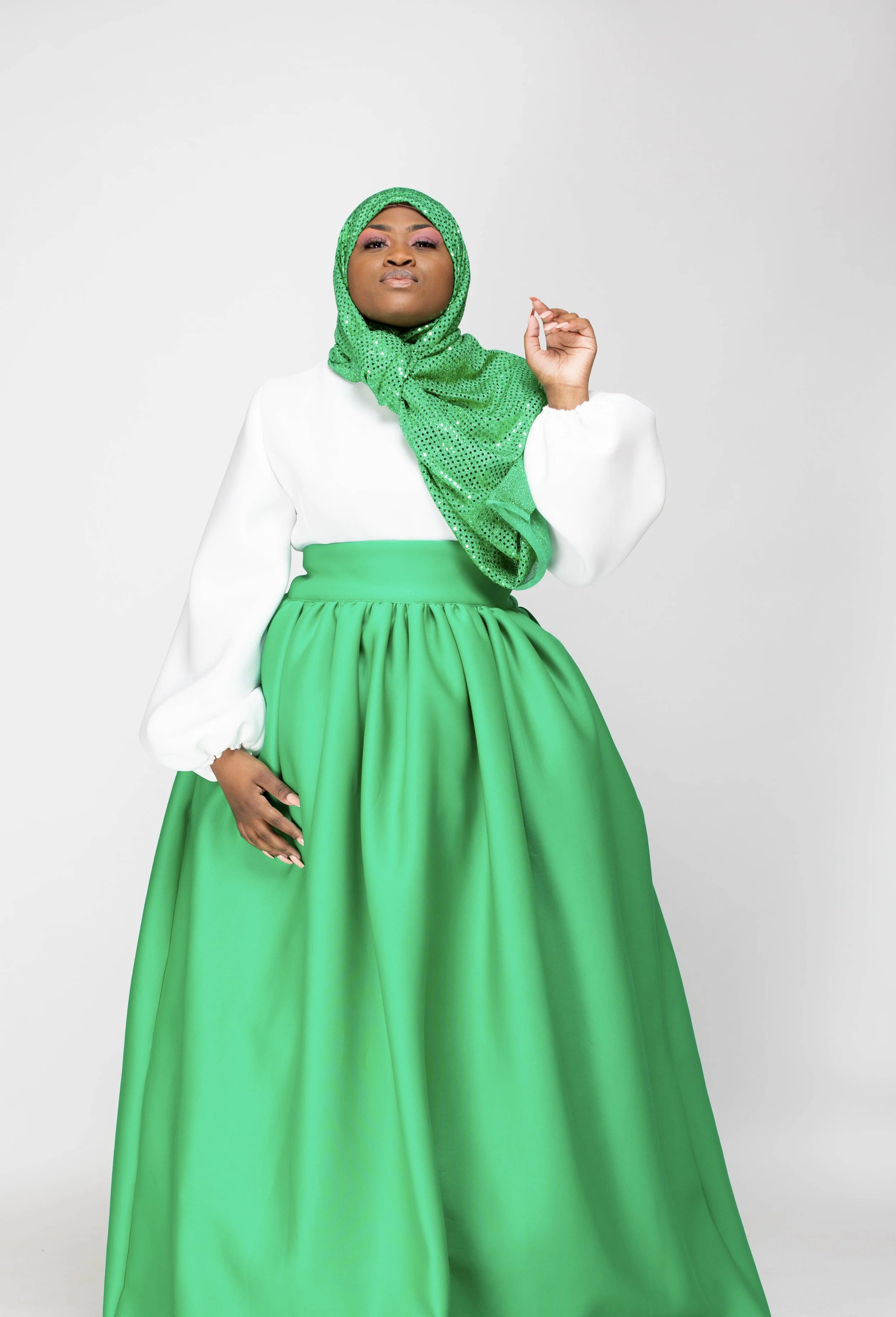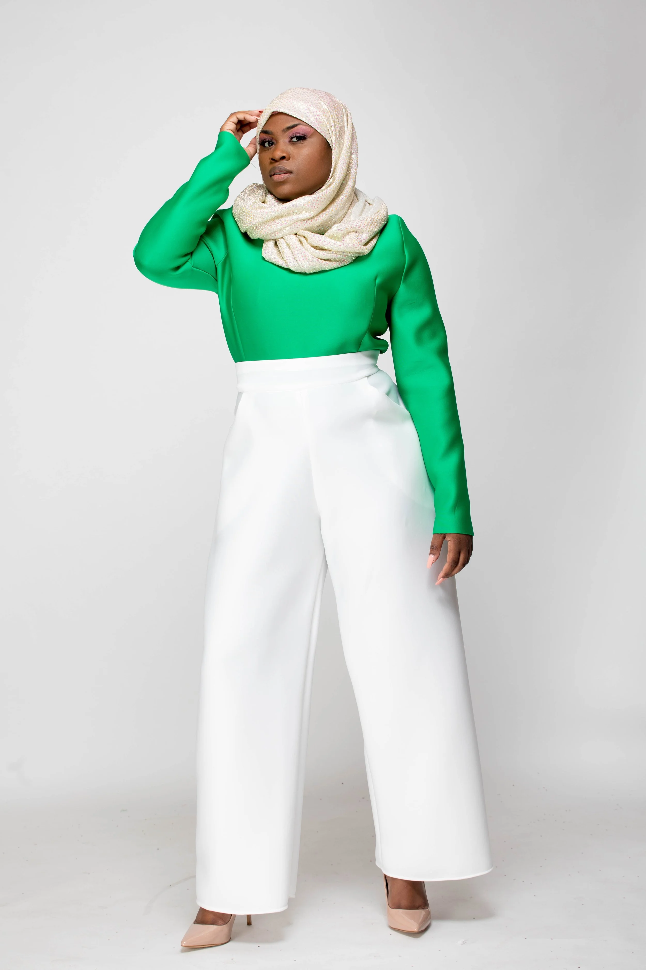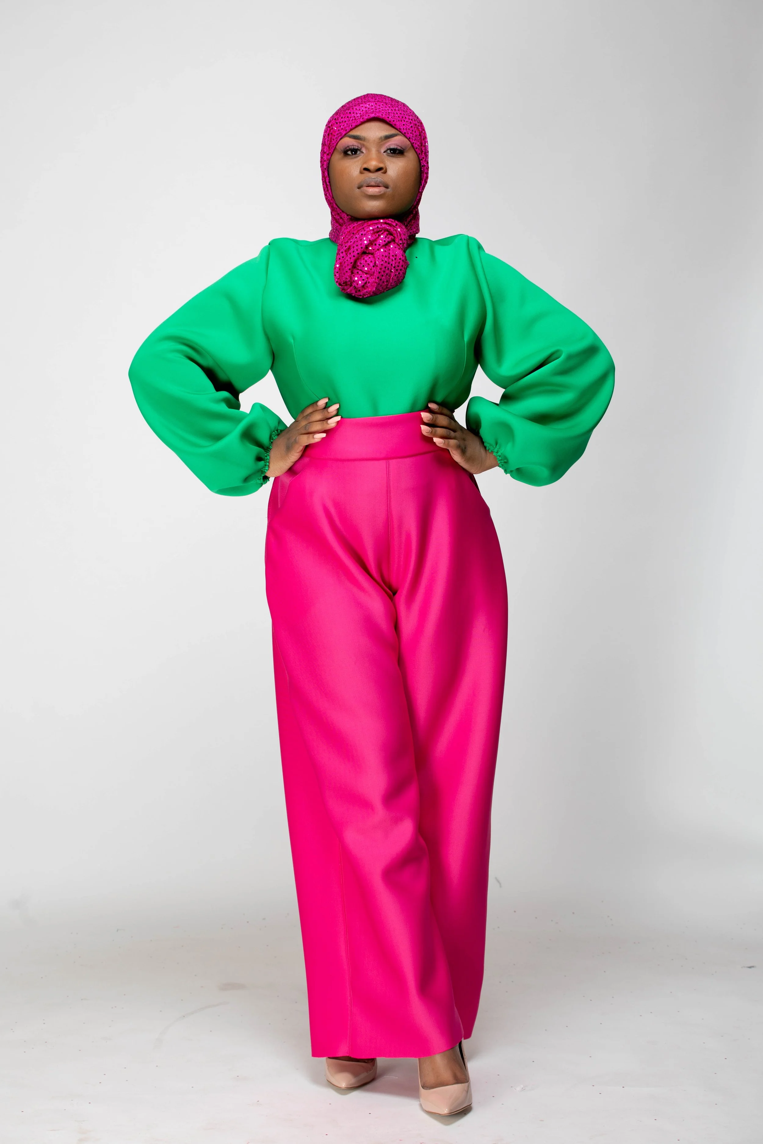 The color palette honors Mrs. Beyah’s Alpha Kappa Alpha lineage, the PHirst sorority of the Divine 9, just as Mrs. Beyah was the first to see my potential. The hijab and silhouettes reflect her Muslim grace, the way she merges modesty and modernity with effortless elegance. Even the unedited photographs echo her “professional authenticity,” teaching me that truth is its own beauty.